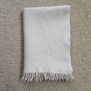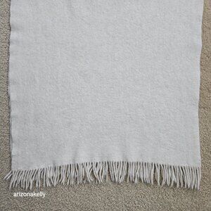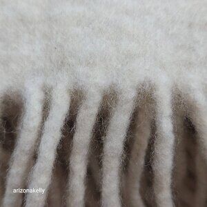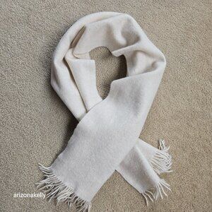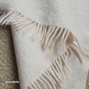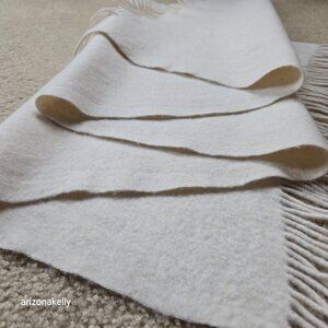 Not a single flaw! Beautiful, soft, and unique...this felted cashmere scarf is sure to keep you warm this winter. Natural ivory color. There are no tags on this scarf, but I have included a screengrab to show the price of a similar scarf. Felted cashmere is expensive because it requires more of the product and more steps to felt it.