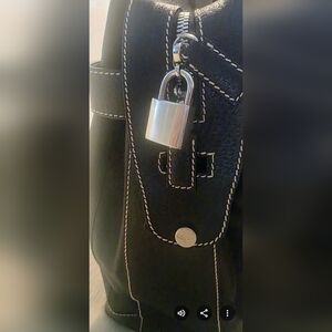 FERRAGAMO GANCINI VINTAGE NEW Padlock Black Leather Men's Bag