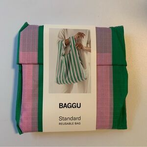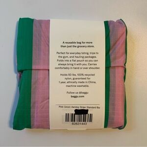 Baggu Standard Reusable Tote Bag Pink Green Awning Stripe Brand New