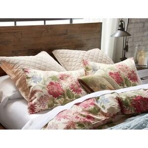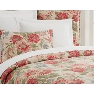 Pottery Barn Marla Duvet King Linen Blend Red Floral Roses Peony Iris Pink