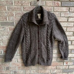 L.L. Bean Wool Blend Brown Button Up Sweater Women's XL