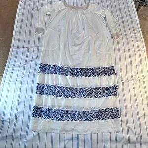 Ampersand Heart Women’s Small Cream Blue Long Sleeve Embroidered Dress