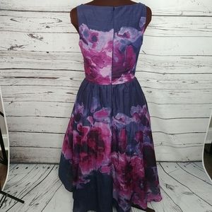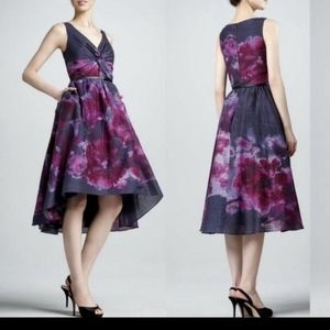 Gently used Neiman Marcus for Target Lela Rose silk blend dress. Size 6. Approx 16 1/4 inches pit to pit and 41 inches long in the front. Has belt loops but no belt. High low.