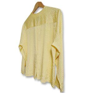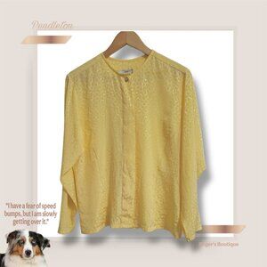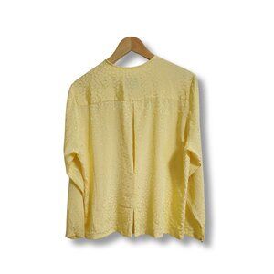 🌾This Women's estimated size Large 80s Vintage Pendleton Blouse is a unique find, blending sophisticated boho style with timeless quality. Its light yellow/cream fabric features a subtle embossed/jacquard pattern, adding texture and depth.