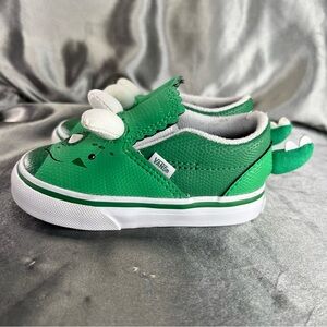 Vans Toddler Slip On Green Triceratops Dinosaur Slip On Sneakers Size 5.5 EUC
