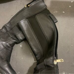 Tory Burch Black Christy Tumbled Leather Stretch Riding Boots