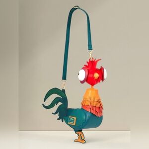 Features include faux leather (PU), figural crossbody, applique, real fringe, printed details, & an adjustable crossbody strap.