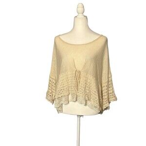 F3 Fefcubic Off White Poncho Style Top W/ Drawstring Waist And Lace Details Sz M