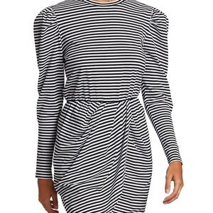 Derek Lam 10 Crosby Nyla drama Puff-Sleeve Stripe Cotton Dress small mini