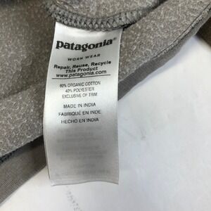 Keywords: Patagonia, Long Sleeve, Raglan, Tee Shirt, Organic Cotton, Logo, Casual, Outdoor, Comfortable, Athletic, Activewear, Sustainable, Size S, Gray Shirt, Brown Sleeves