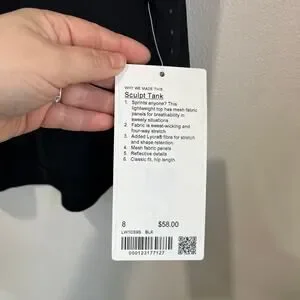 Lululemon Sculpt tank featuring the UNC North Carolina logo. Lightweight, breathable performance fabric with a slightly longer back hem—great for training or casual athleisure wear.