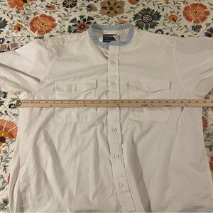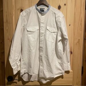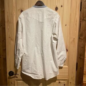 Vintage Wrangler White Shirt with Light Blue Accents Size 17-35 Collarless