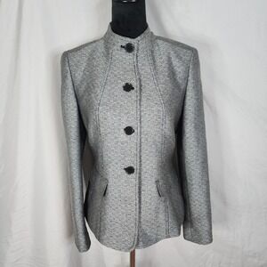 CALVIN KLEIN Size 6 Gray Tweed Mandarin Collar Business Casual Jacket Blazer EUC
