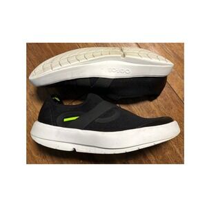 OOFOS Ooahh Luxe Slip On Sandal Recovery Shoe Black Green Trim Comfort Mens