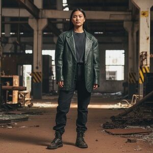 Vintage Rickie Freeman for Teri Jon Dark Gray Button Up Leather Jacket. Size 12