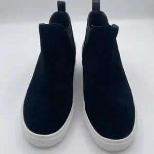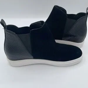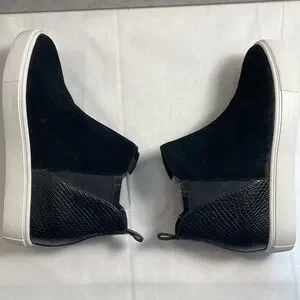 Steve Madden Zaci Wedge Sneaker Boot Black Suede Leather Faux Snakeskin Size 7M