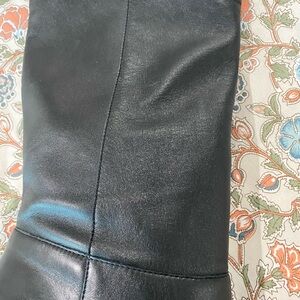 Elegant Sleek black leather boots with a pointed toe. High heel for added elegance. Perfect for stylish outings. Heel is 3 inches