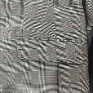 Talbots Glen Plaid Blazer Classic Workwear Jacket Gray Black Pink Trim Size 16
