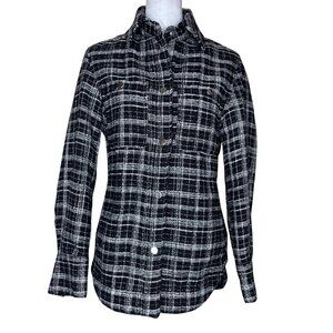 H&M Women's Black Check Thick Tweed Jacquard Shirt Jacket Accent Buttons Size XS