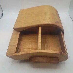 Keepsake Box Nautical Wave Shaped Cherry Wood Bandsaw 2 Compartment Handmade.