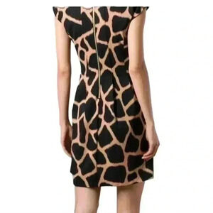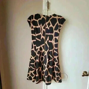 Women's Giraffe Print Dress 00 Short Sleeve Zip Michael Kors Knee Length