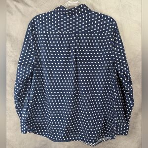 Talbots XL Petite Polkadot Button Down Blouse In Navy/White