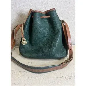 Vintage Dooney & Bourke Green All Weather Pebbled Leather Drawstring Bucket Bag