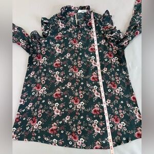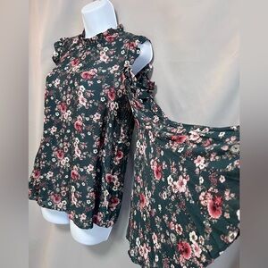 Ro & De Anthropologie Blouse Floral Green Long Bell Sleeve Off Shoulders Small