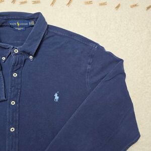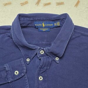 Keywords: Ralph Lauren, button down shirt, long sleeve, menswear, casual shirt, preppy, classic, blue shirt, featherweight mesh, button-up, polo ralph lauren