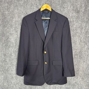 Jos A Bank Mens 41L Navy Blue Blazer Gold Two Button Sport Coat Jacket Business