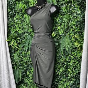 HOUSE OF CB Dress Women Small Green One Shoulder Riccarda Ruched Pleated 2813