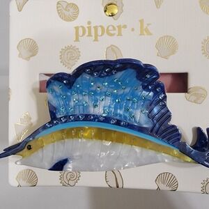 Piper K Blue Swordfish Rhinestones Hair Claw Hair Clip Sea Life Coastal Beach