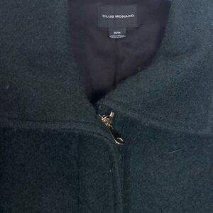 Club Monaco Wool Boucle Zipper Pea Coat Pockets Jacket Green Gold Minimalist M