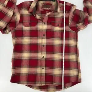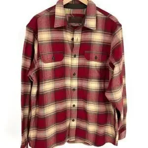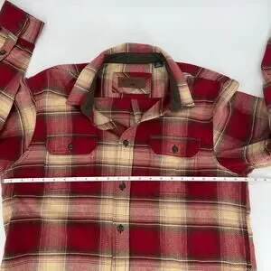 ORVIS Red and Tan Plaid Flannel Shacket Shirt Size Large