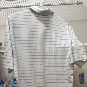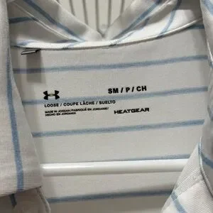 Stylish Under Armour polo with blue stripes. Comfortable and versatile for any occasion.