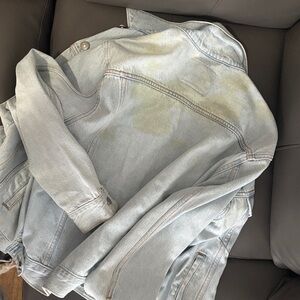 Classic Levi's denim jacket in light blue. Timeless design for everyday style. Stained ,but great buy for a person who wants it.