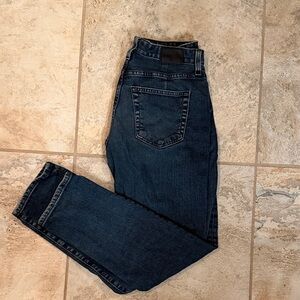 Stylish dark blue denim jeans with classic pocket design. Perfect for casual wear.
