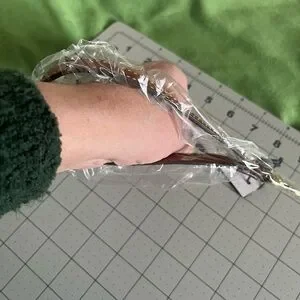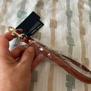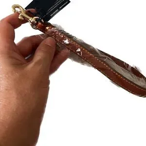 New. D & B Wristle. Material: leather. Color: brown with yellow thread.