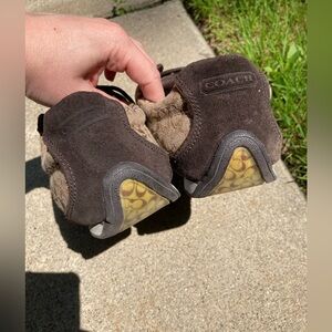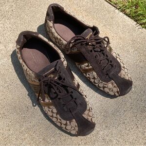 Coach Remmona Tennis Shoe Sporty Sneakers Brown Signature Logo Print Brown Suede