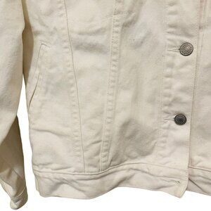 Vintage Jordache Jean Jacket Coat Hand Painted Floral Design White Size Large