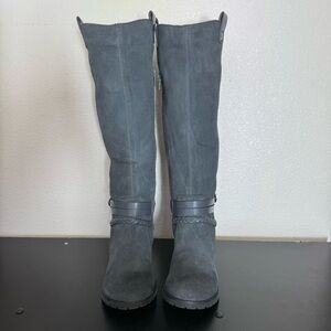 New BC (because music is my heartbeat) knee high gray leather boots in size 6.5. Retail price was $150.