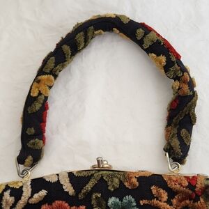Colourful Chenille Floral Tapestry Handbag Mini Day Purse with matching Cloth Handle, by JOHN WIND.