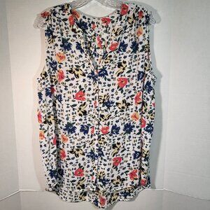 Chelsea & Theodore Woman's Sleeveless Button Up Top Size XL White w/Floral