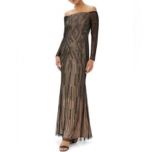 ADRIANNA PAPELL Beaded Off-The-Shoulder Evening Dress Size 2