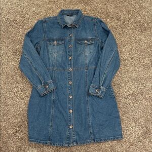 Frye Denim Button Front Shirt Dress Large NWOT Blue Jean Mini