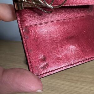 Red Gucci key case. Corners and edges super clean. Few marks on inside that I haven’t tried to clean. Comes with box and dustbag!