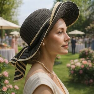 Make a statement with this striking black and white striped sun hat! The wide brim offers excellent sun protection while adding a touch of elegance to any outfit. A stylish black ribbon adorns the base of the crown, adding a sophisticated detail. The floppy brim creates a flattering silhouette, perfect for a day at the beach, a garden party, or a leisurely stroll through town. This hat is sure to turn heads and keep you cool and comfortable all summer long.