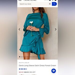 SELFIE LESLIE Darla Long Sleeve Satin Dress Forest Green L nwt