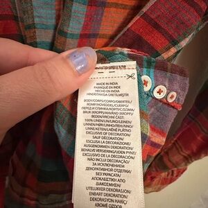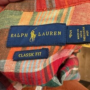 Ralph Lauren Vibrant Plaid Button-Down Shirt 100% Linen size S