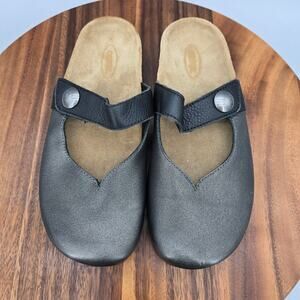 Aetrex Shoes Womens 6 / 6.5 Metallic Gray Leather Adjustable Strap Mule Clogs